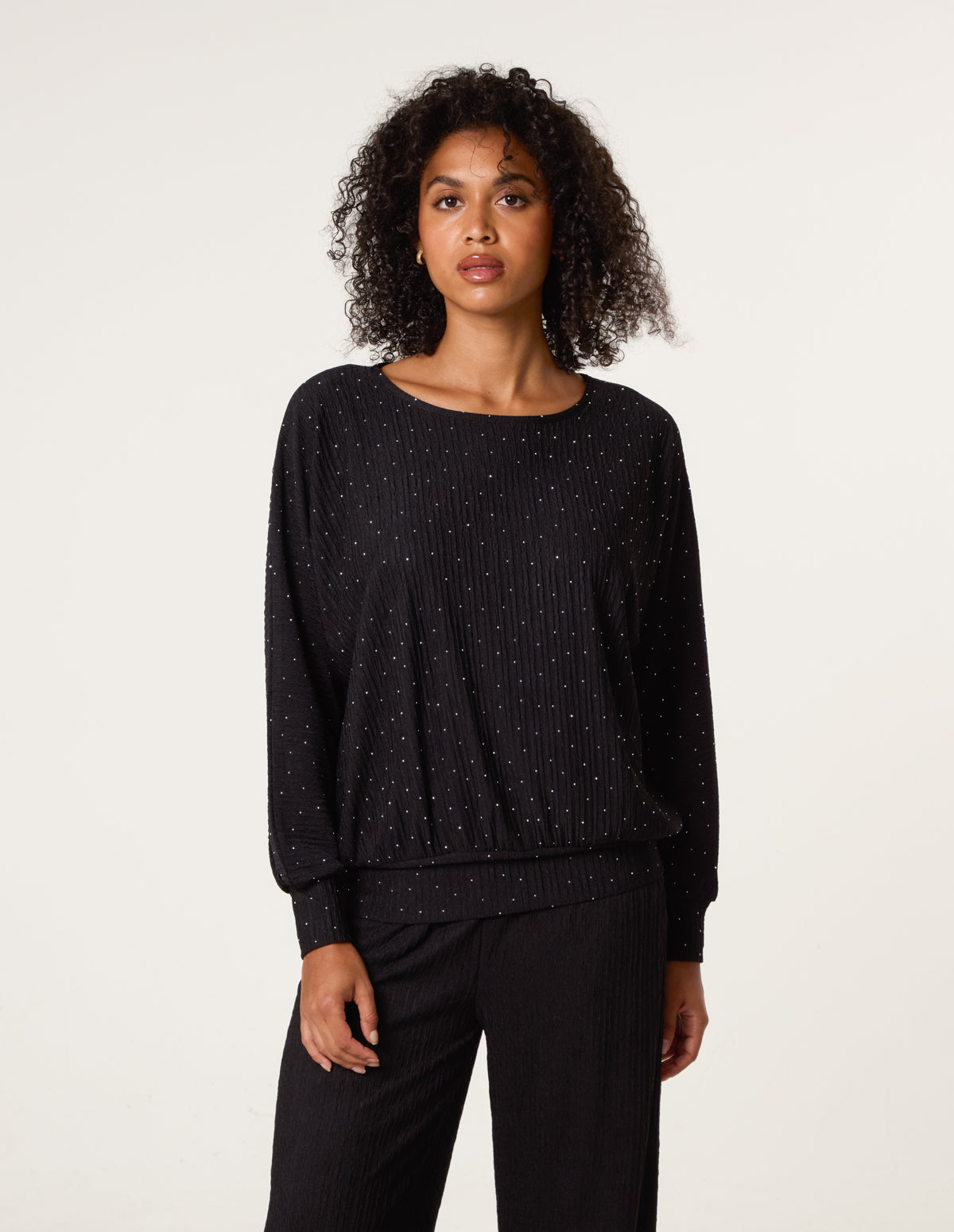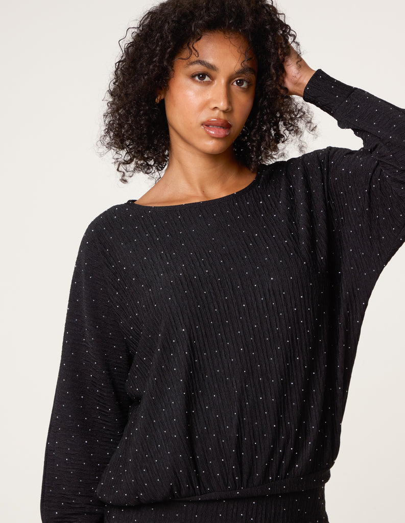 Rhinestone Batwing Top