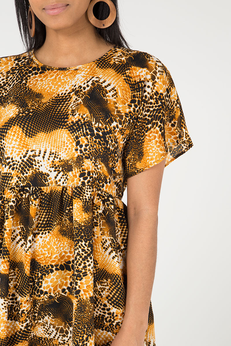 Animal Print Panelled Smock Dress