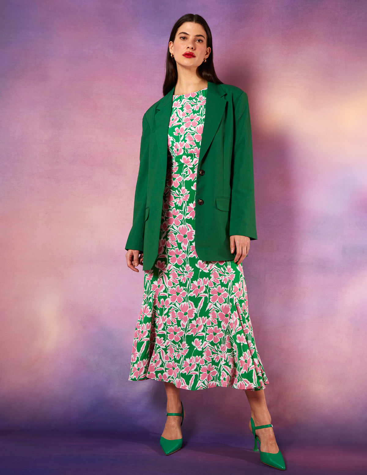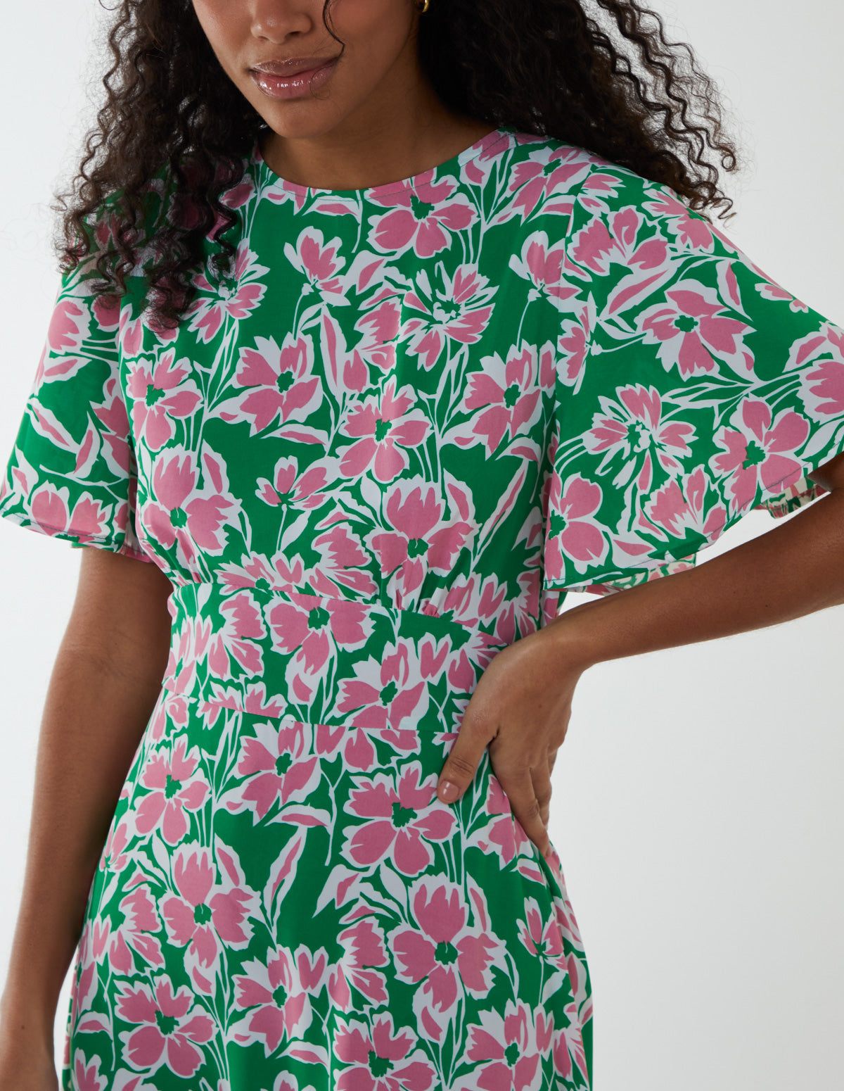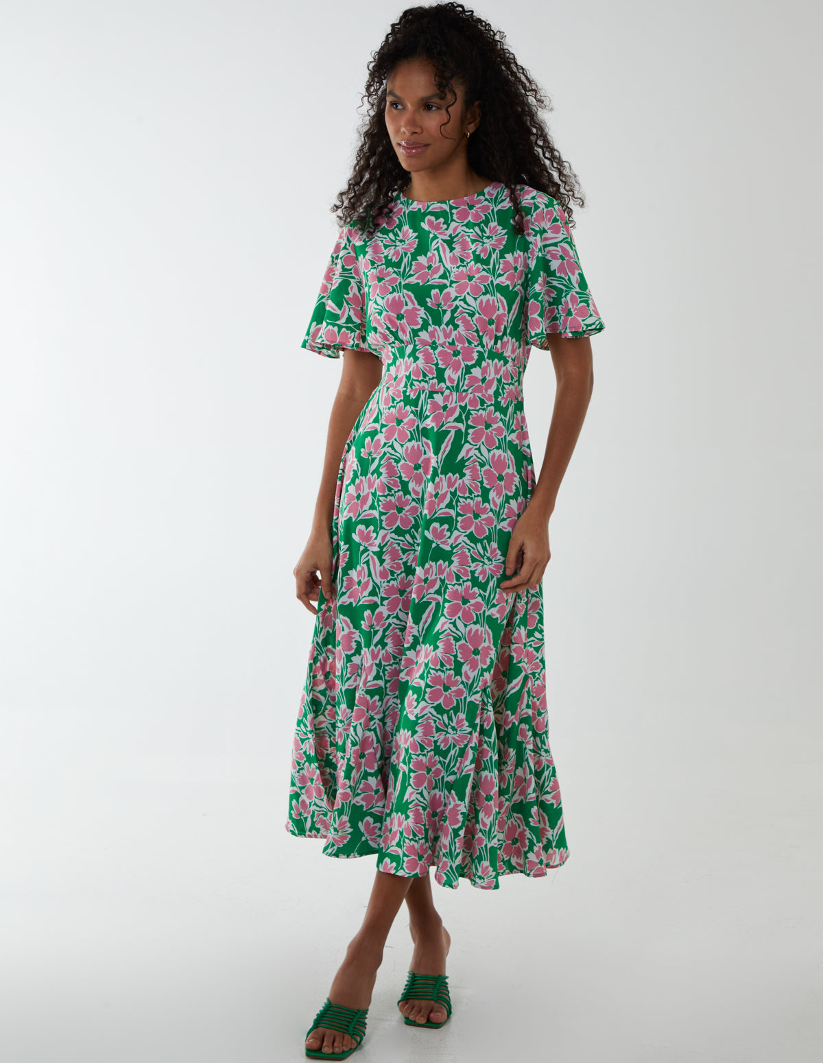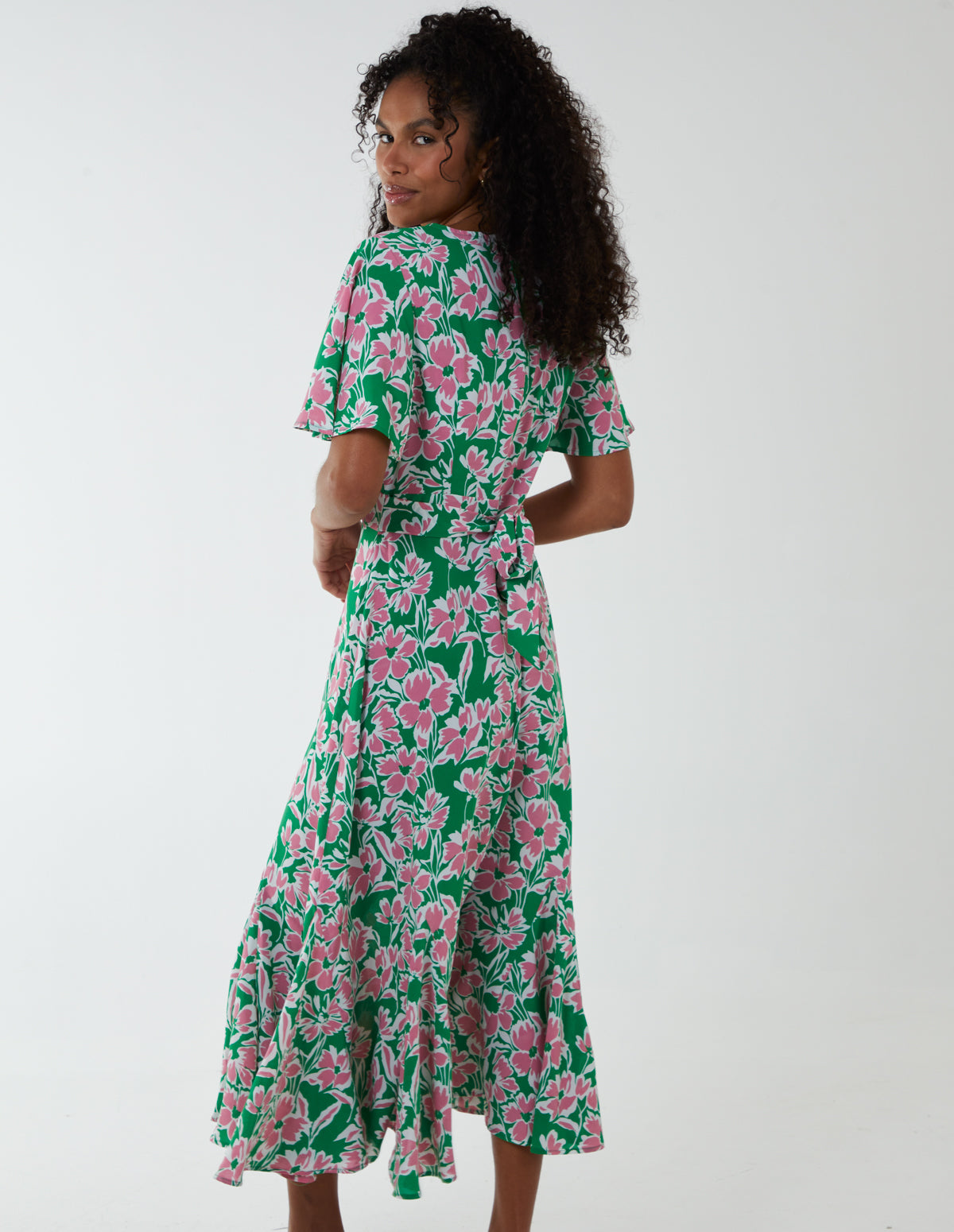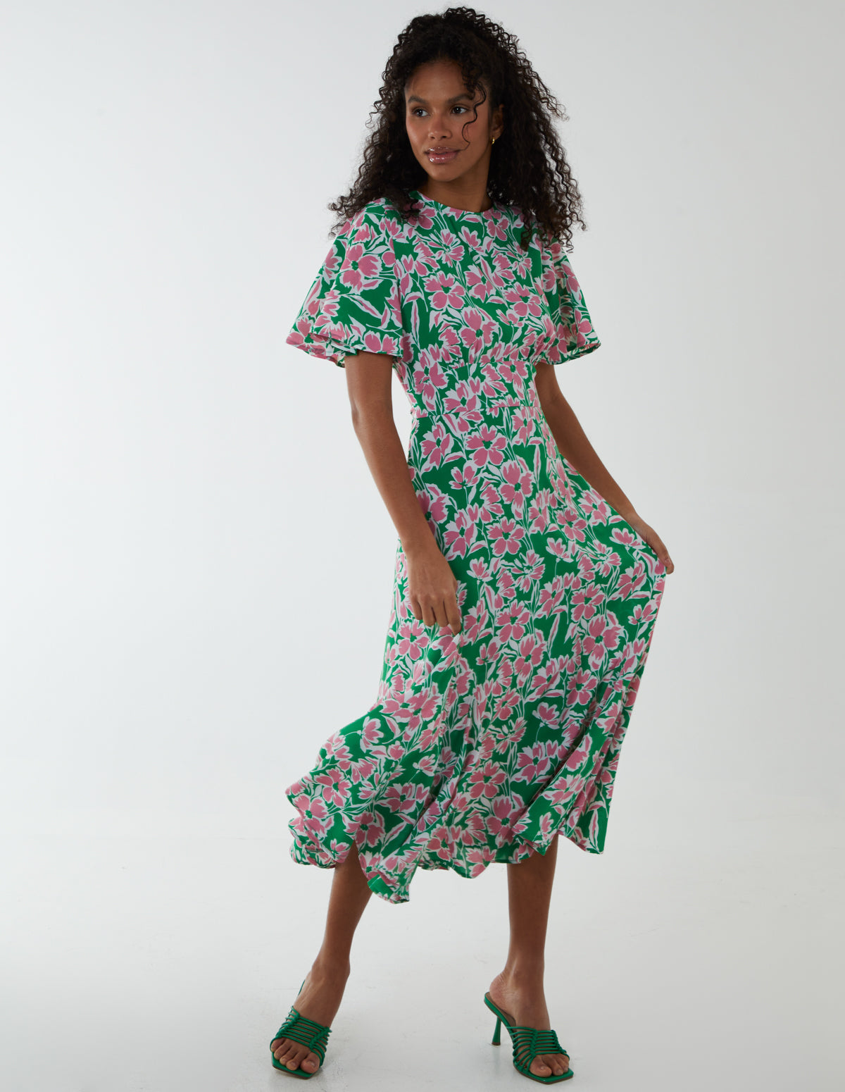 Be summer ready with this floral dress. This midi dress is an essential piece in your wardrobe. Match with pair of colors sandals to get more summery look.