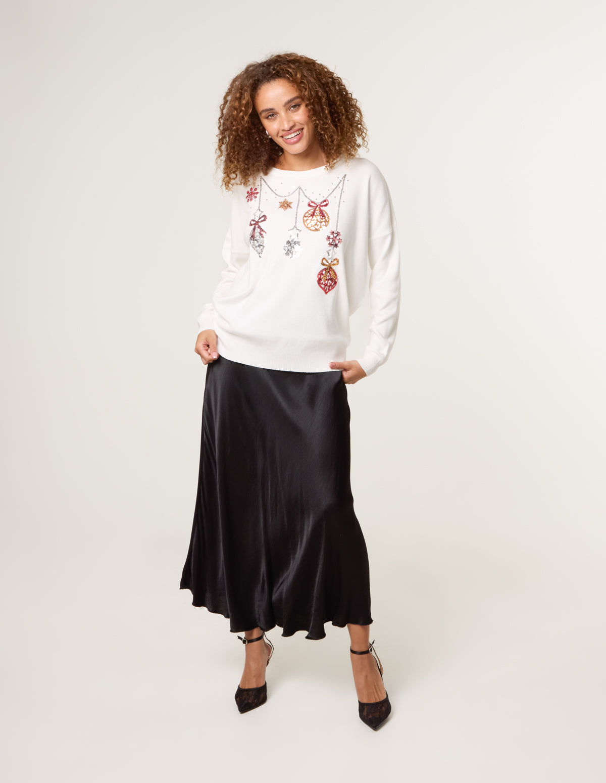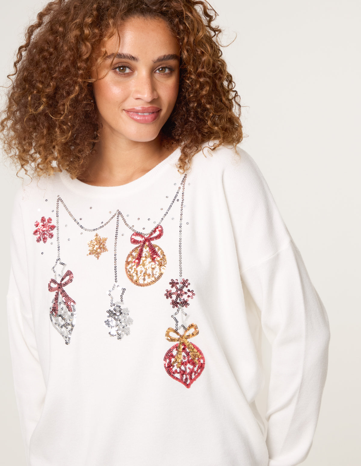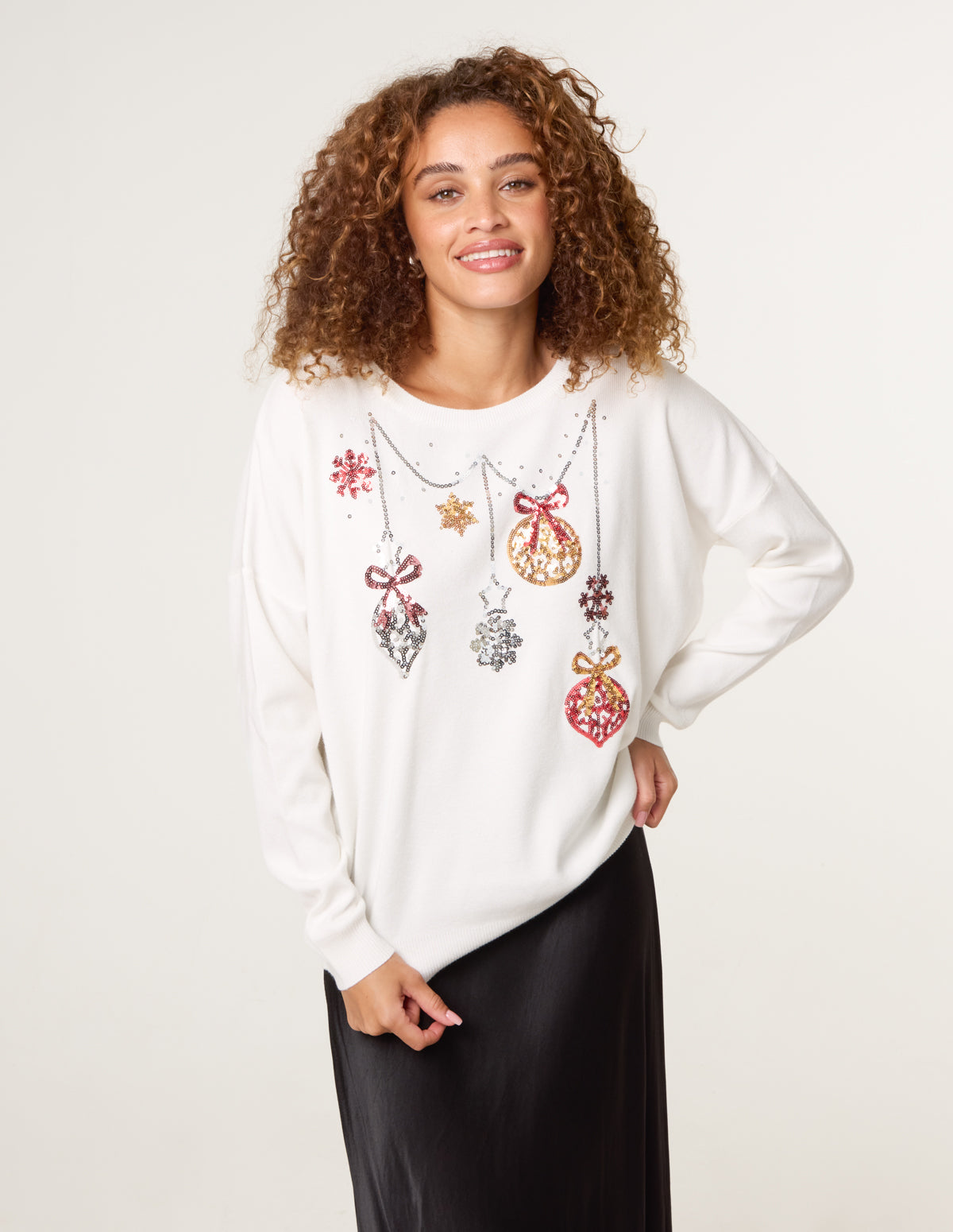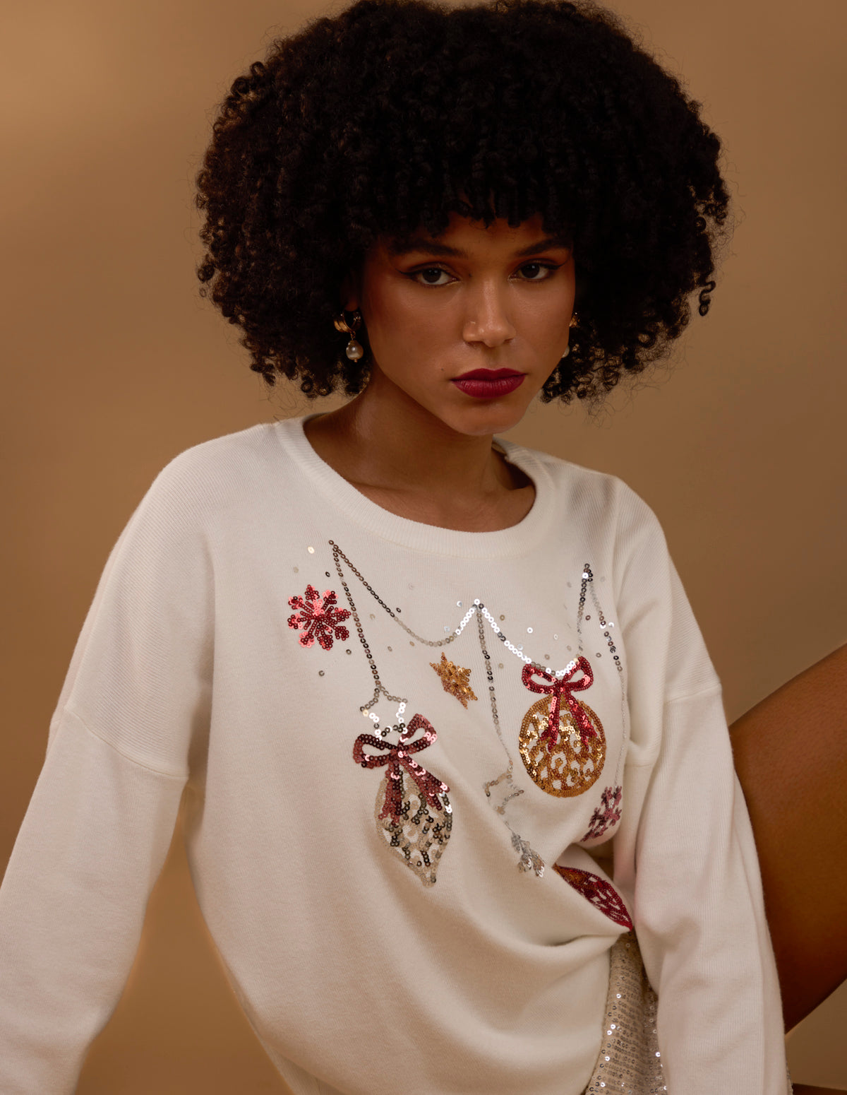 Get in the festive spirit and shop this chic Christmas jumper! Grab your girlfriends and sparkle this festive season to keep all eyes on you. Pair with loose jeans and slippers for a Christmas day outfit to remember.