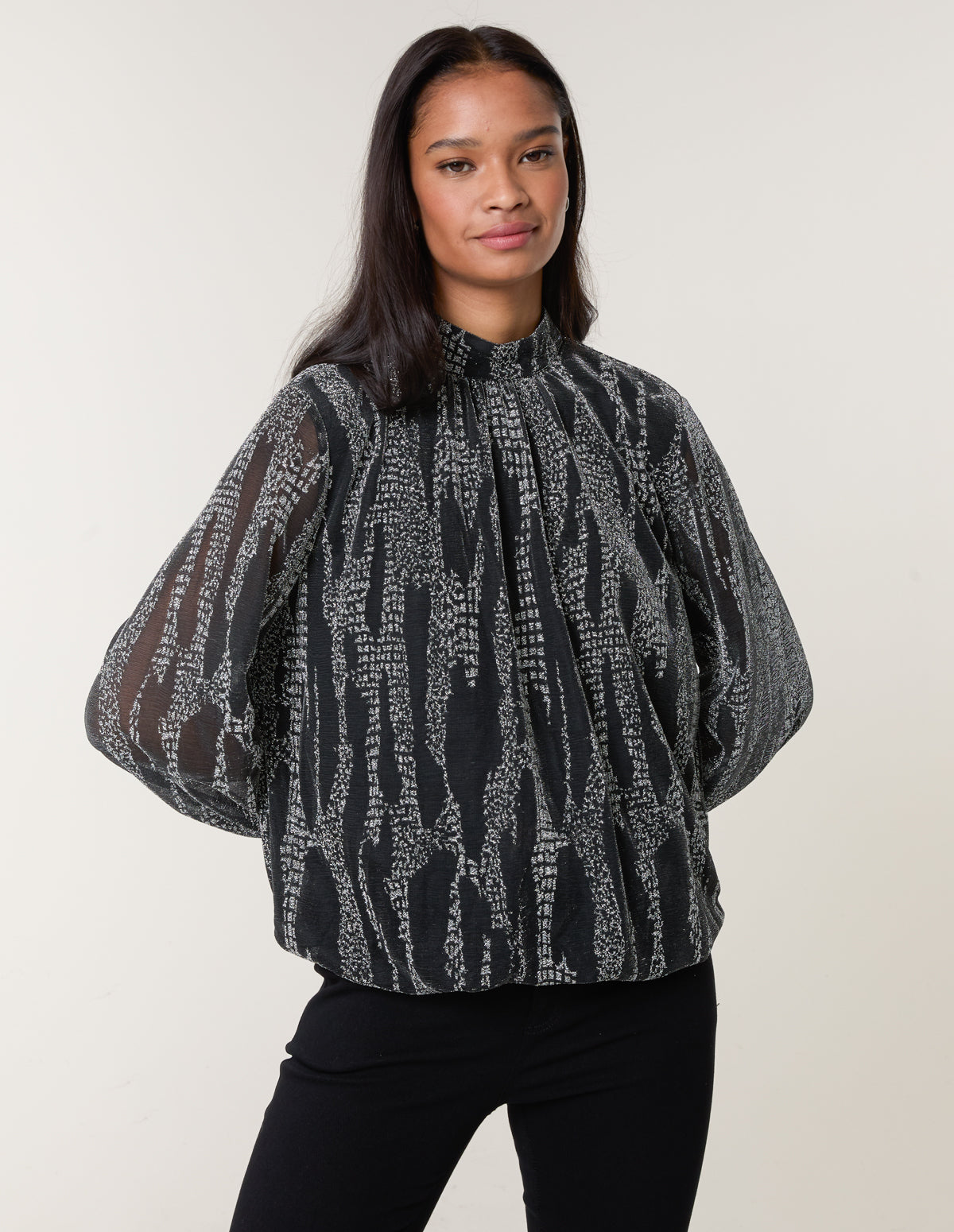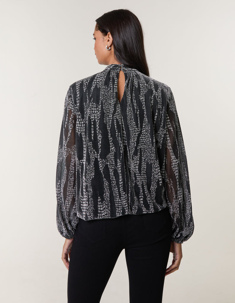 Snake High Neck Puff Ball Blouse