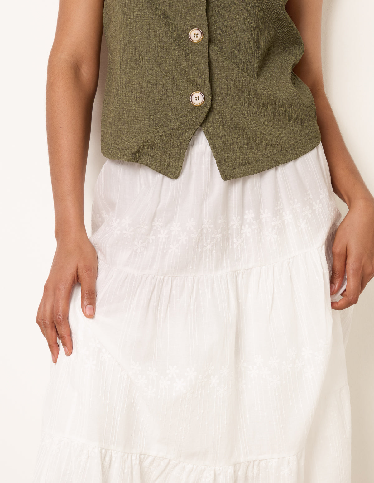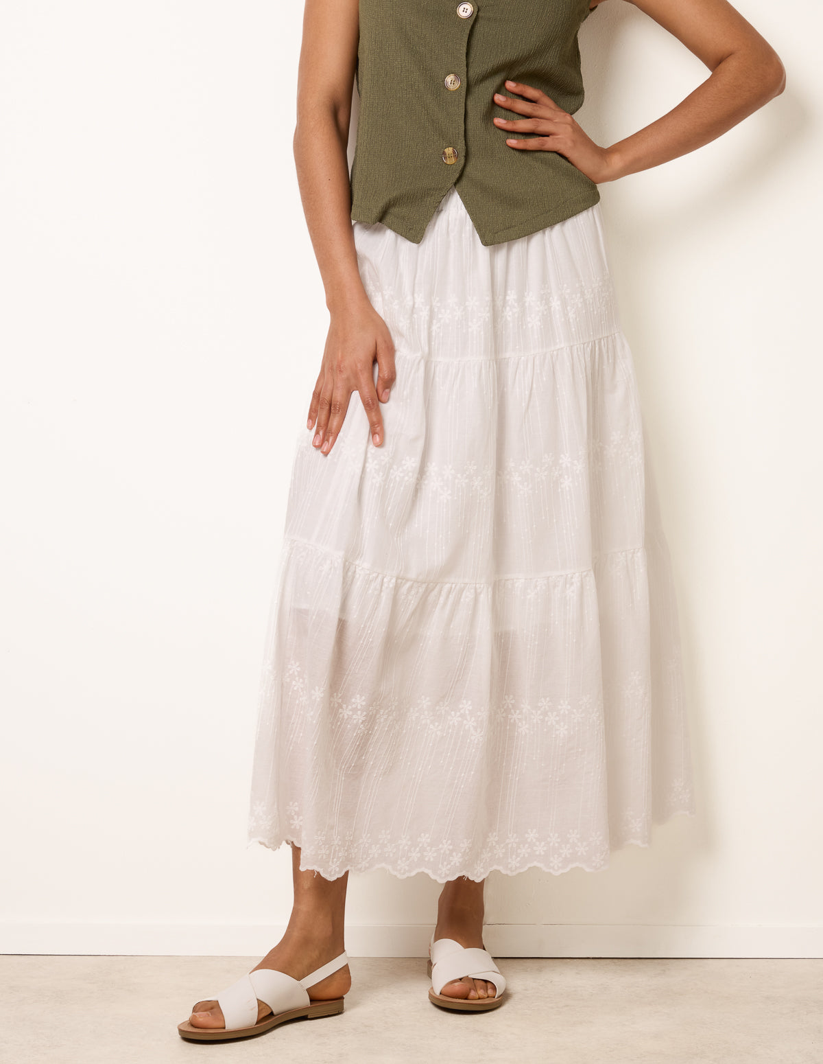 Embroidered Tiered Maxi Skirt