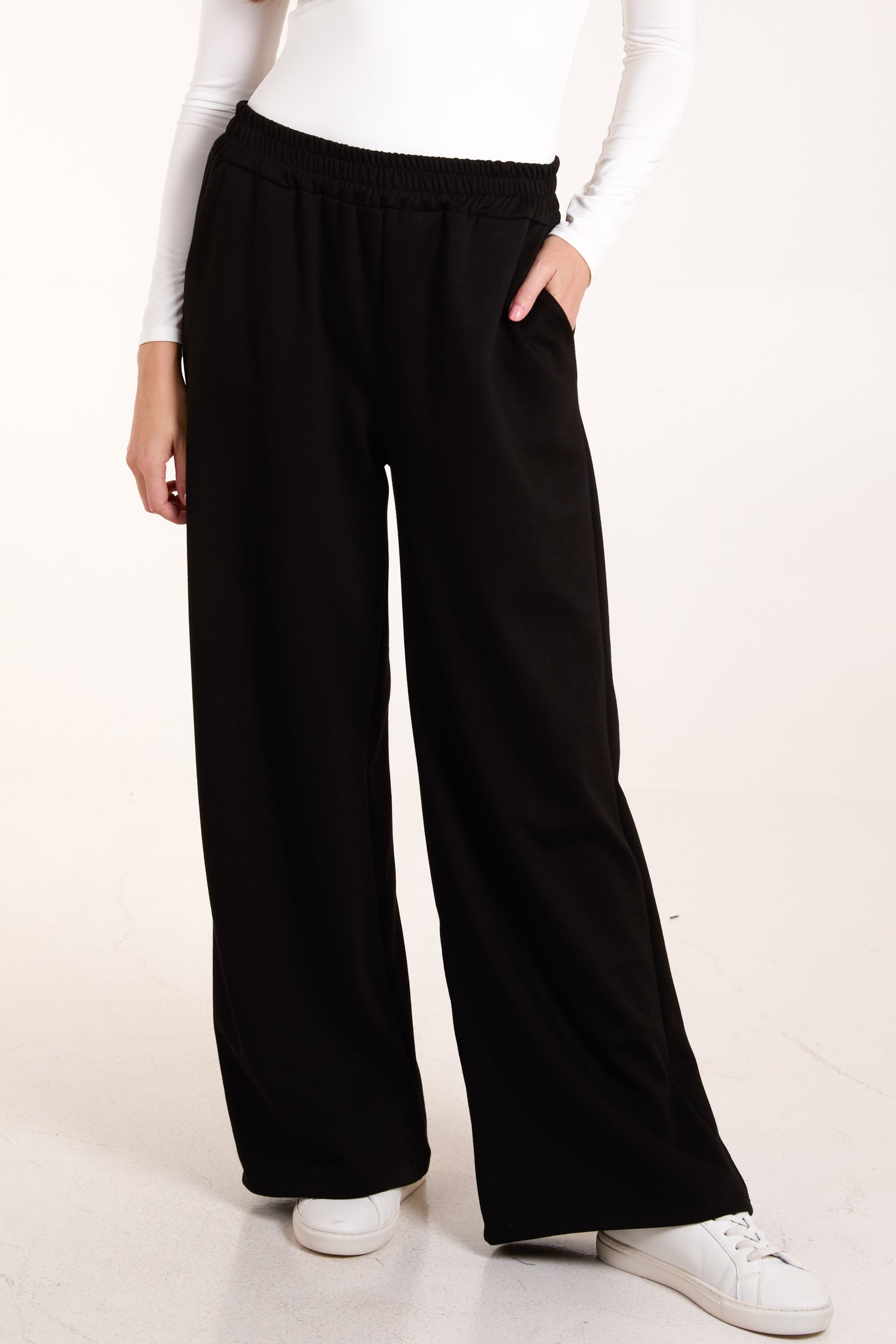 Ready to relax? Do it in style wearing these wide leg joggers. And pair them with our matching sweater.