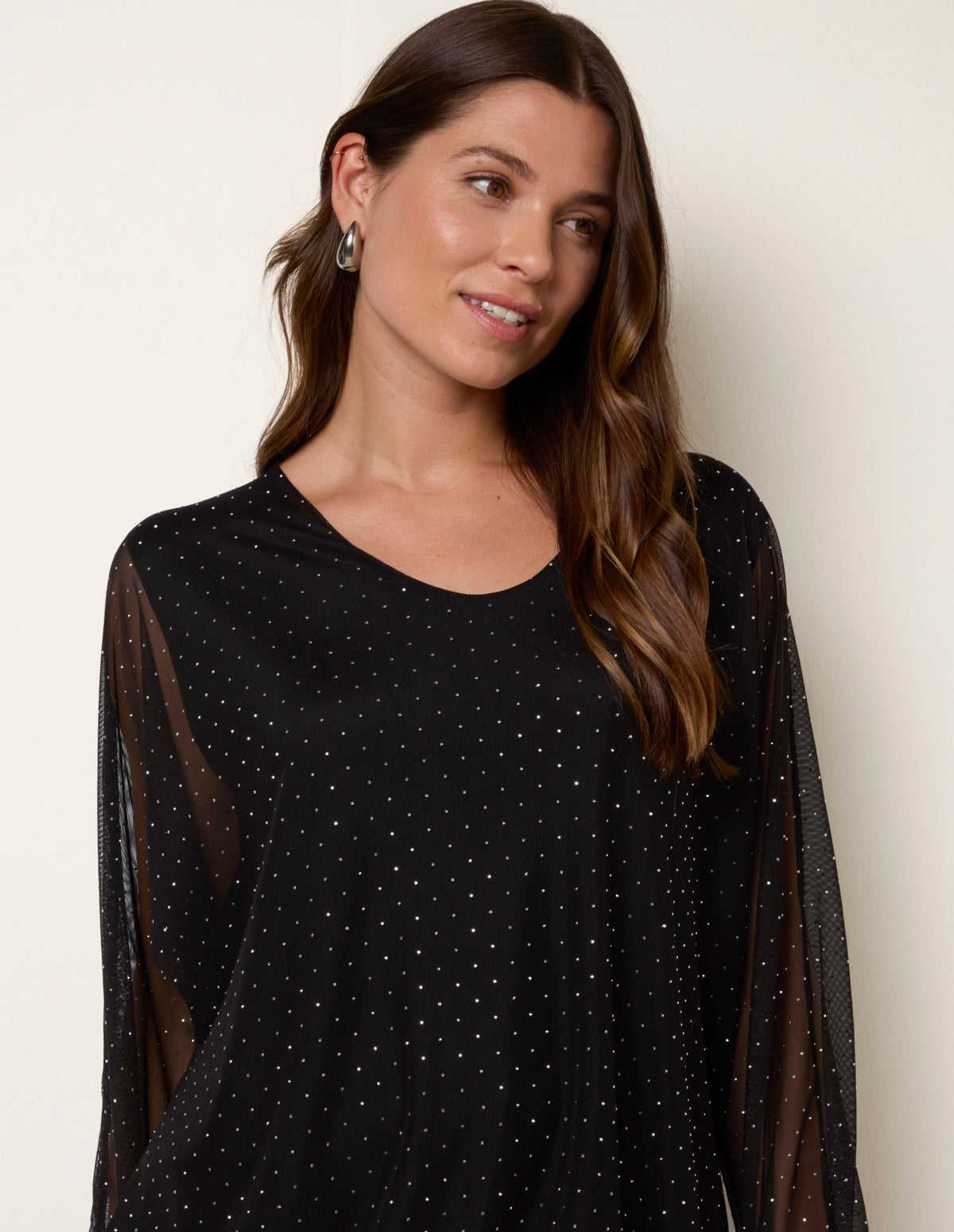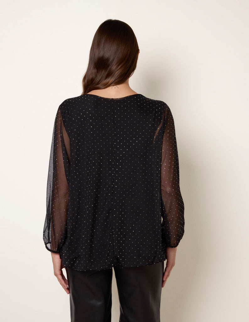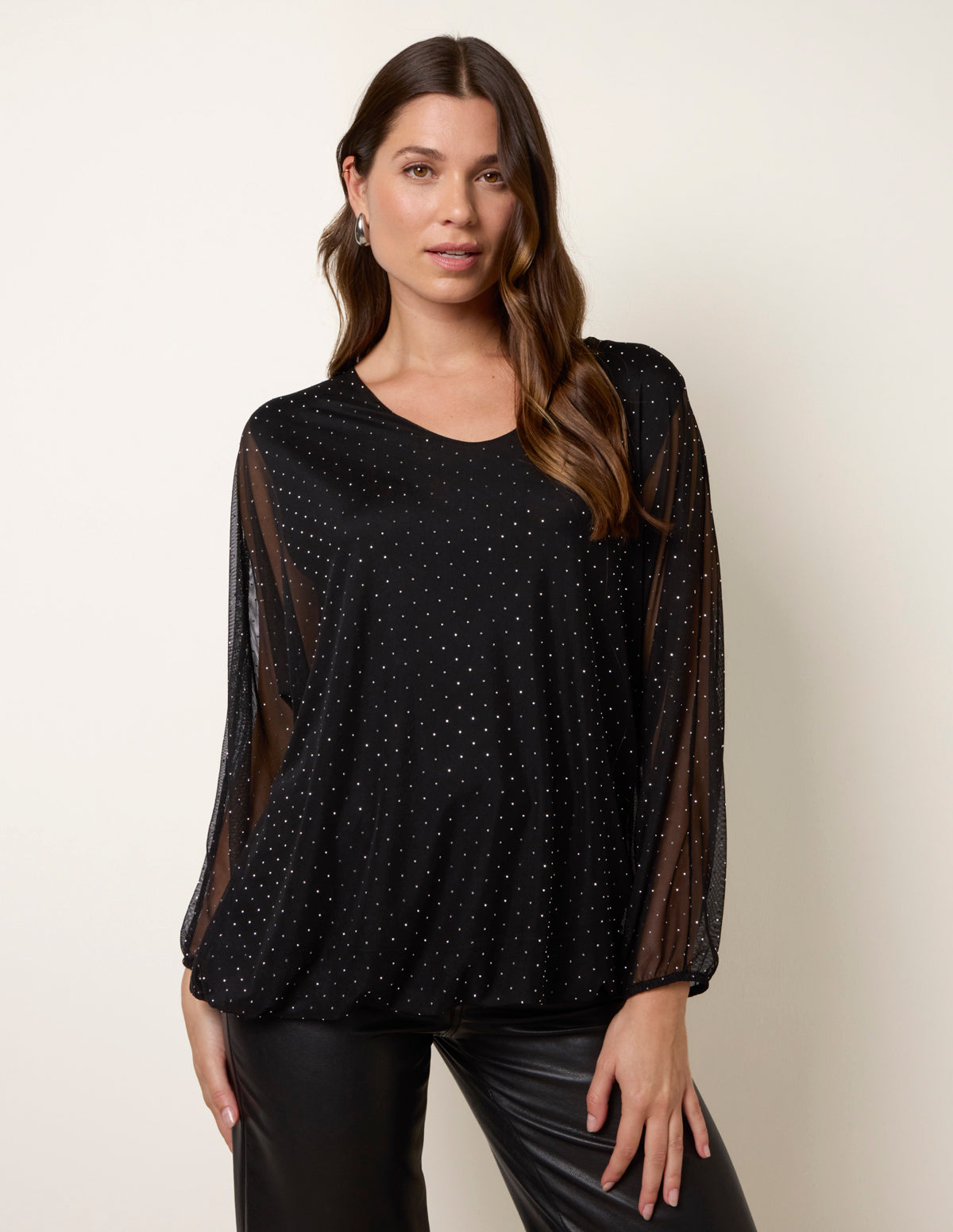 Embrace effortless elegance with this rhinestone detailed mesh blouse, making it perfect for party and evening occasions. Style it with leather trousers and heels to feel occasion ready.