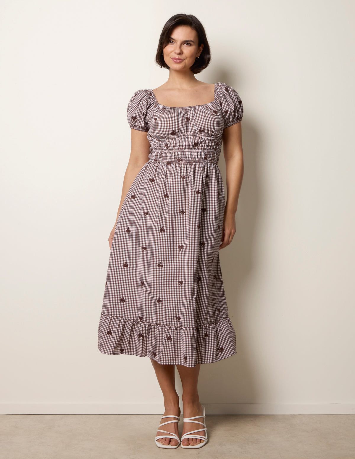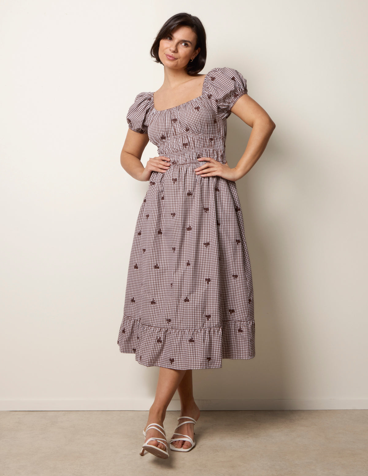 Gingham in a gorgeous chocolate shade really is a match made in heaven this picnic season. Team with ballet pumps.