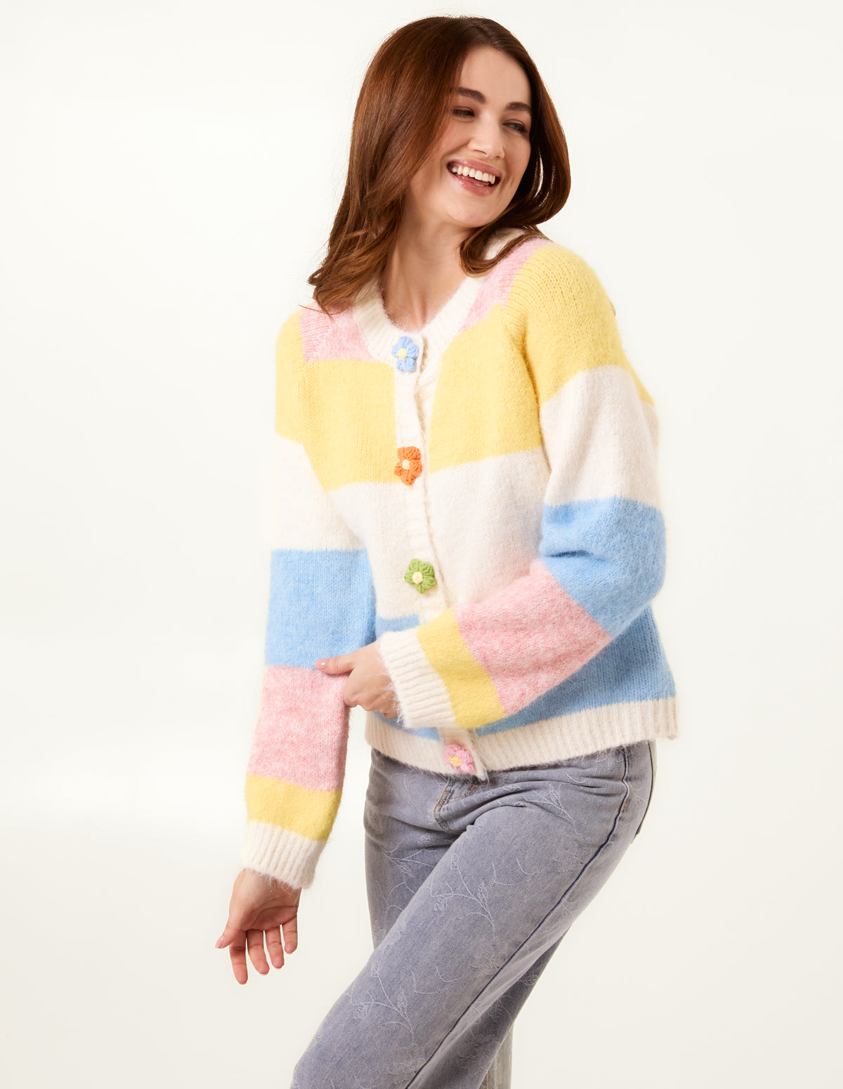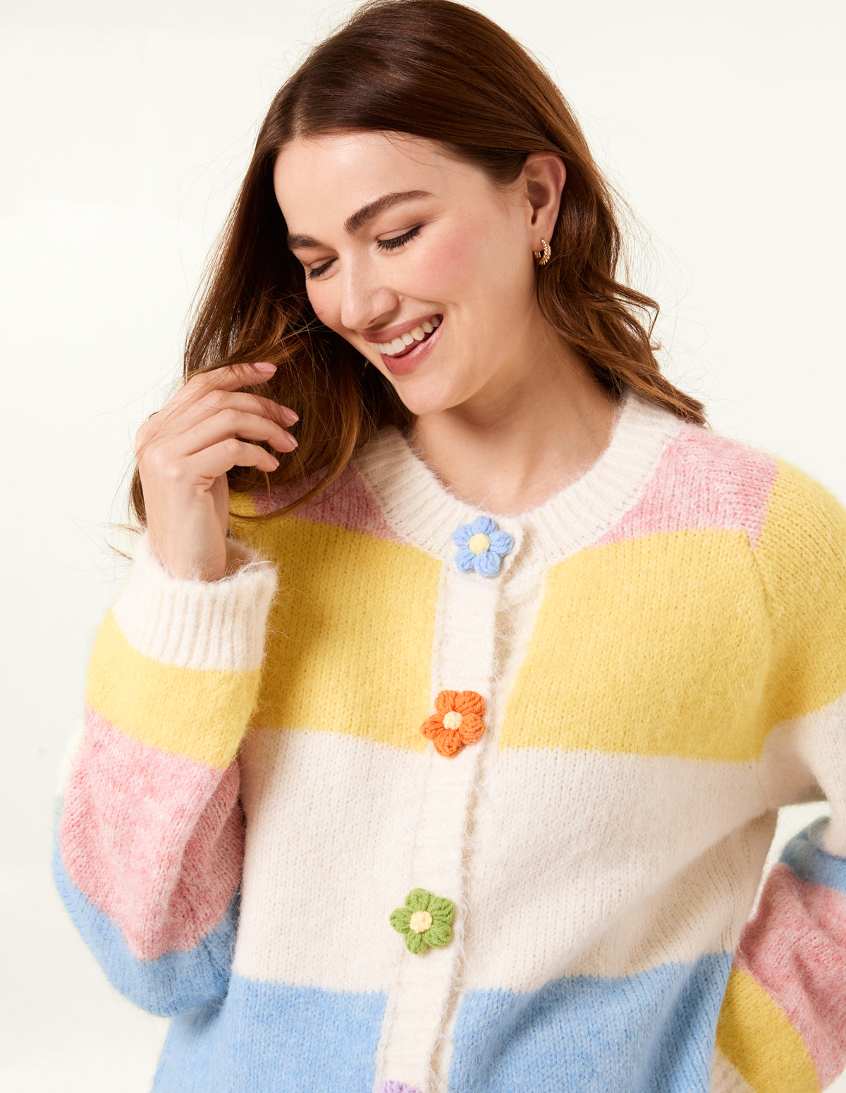 A fun and most of all the cutest cardi of the season! With its flower detailing buttons this little number will leave any outfit it's teamed with looking the cutest.
