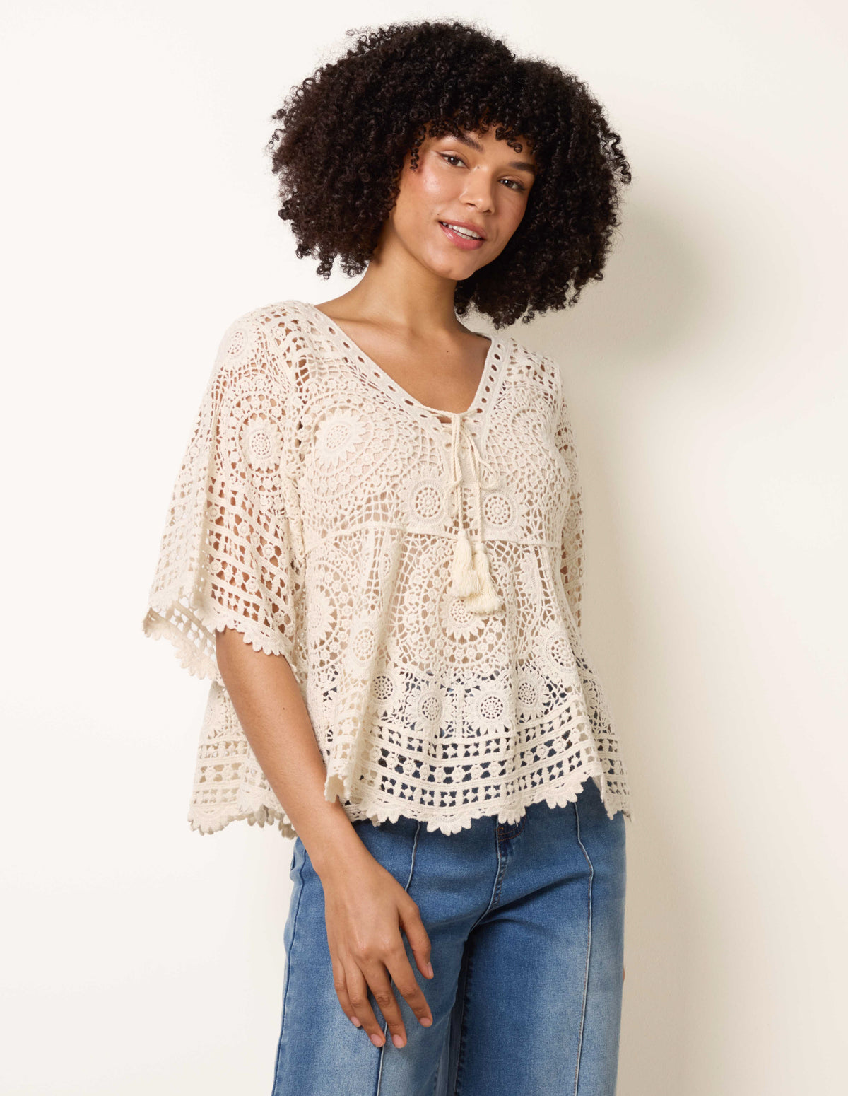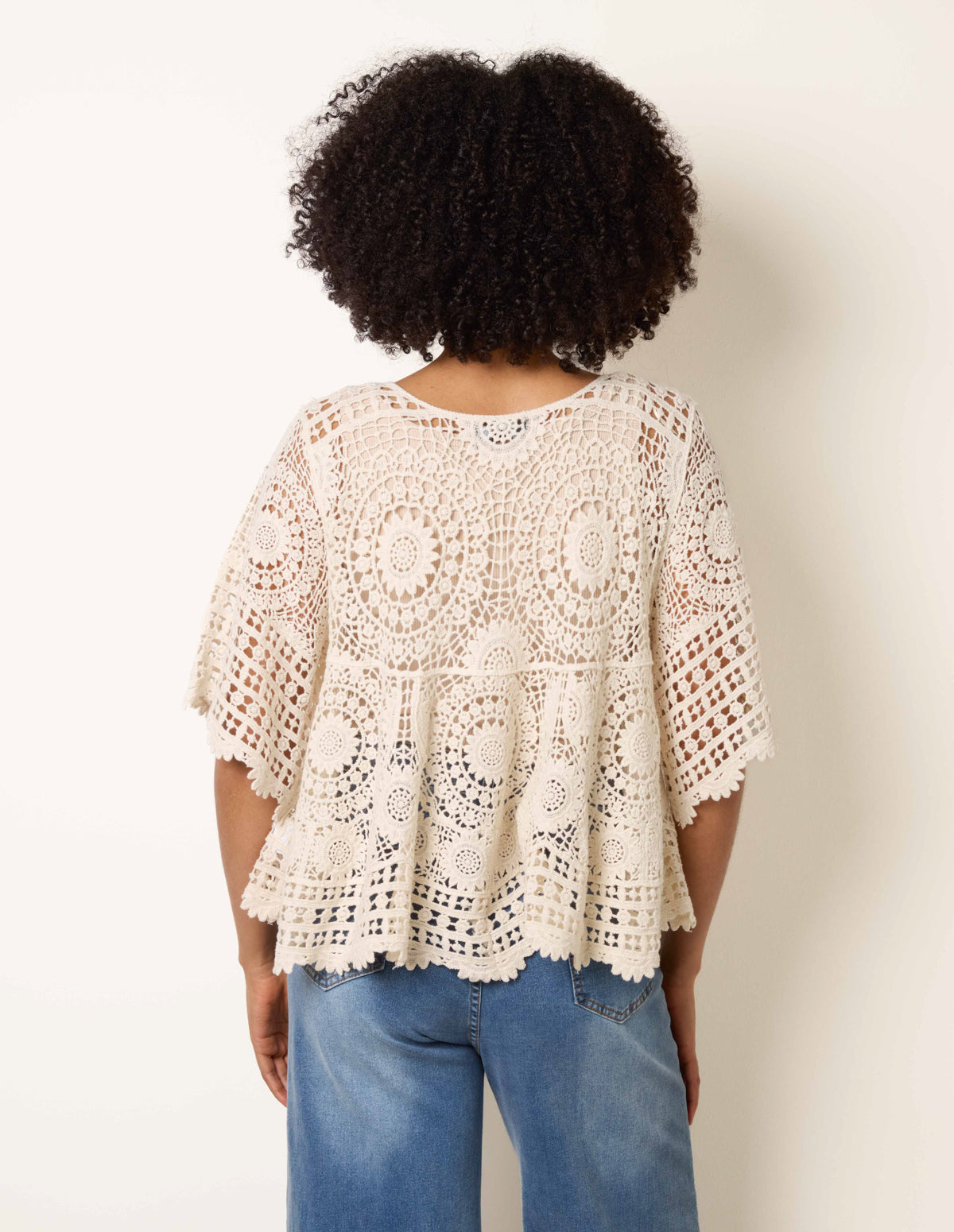 This crochet top is the perfect throw-on piece this season! Team with a basic tee, jeans and sandals for a every day kind of look. Or even better a bikini on holiday on your way to the beach bar. The options are endless.