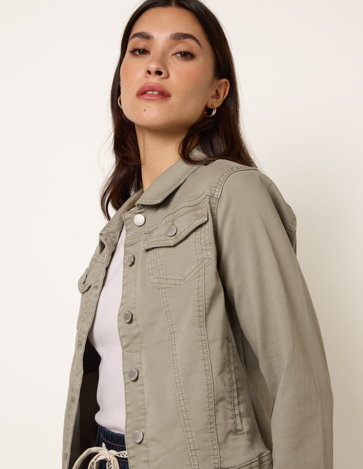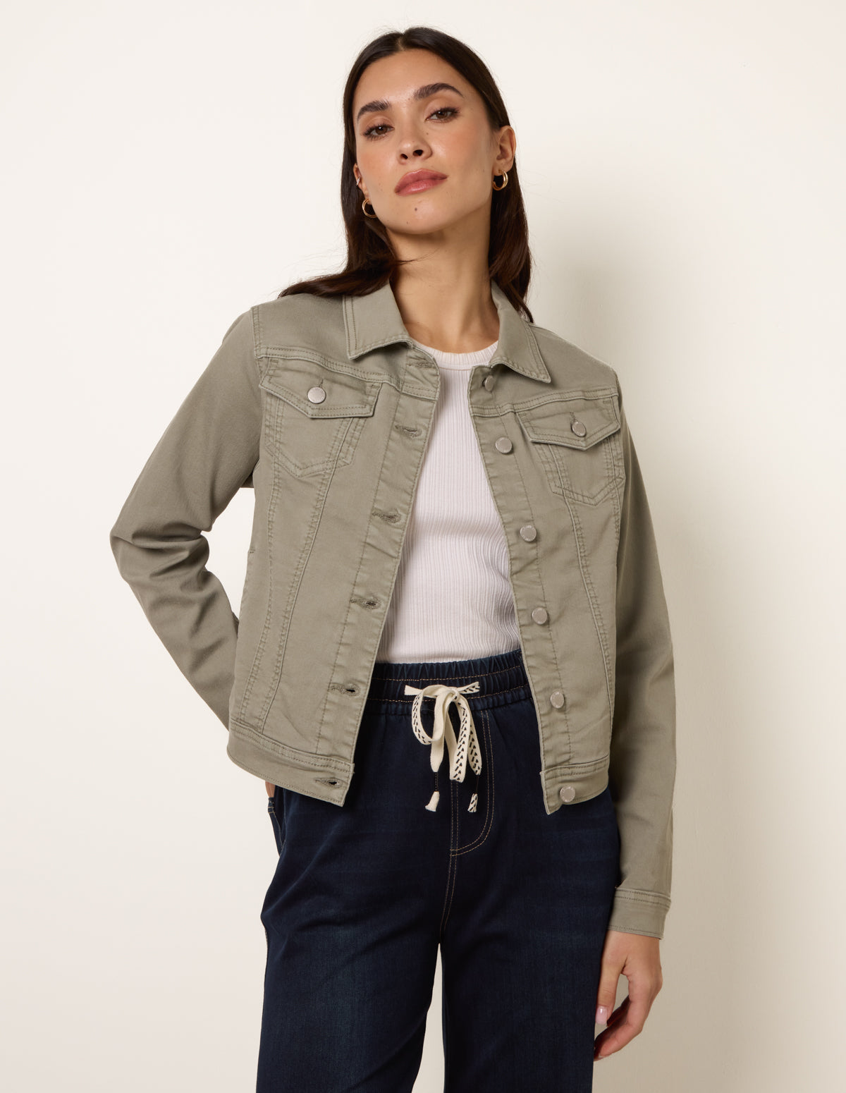A layering and styling essential every summer wardrobe needs! Add a twist to your everyday denim jacket with this khaki shade.
